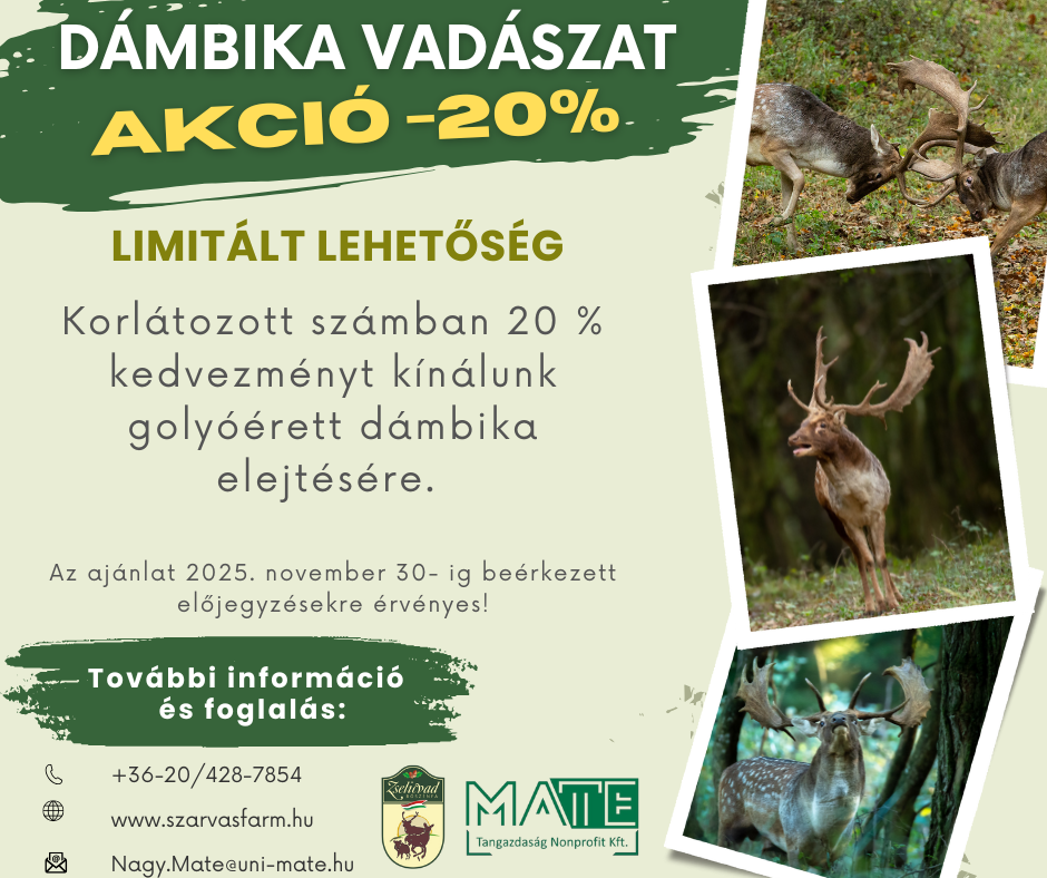 Az ajánlat csak a 2025. november 30-ig beérkező előjegyzésekre és csak a dámbika trófeára vonatkozik!